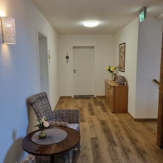 Zwei Wohnungen sind barrierefreie Ferienwohnungen im Erdgeschoss. Eine eignet sich für zwei Personen und ist eine sehr gemütliche Einraumwohnung mit dem Namen "Waldpfad", die Weitere kann vier Personen aufnehmen und hat einen Terrassenzugang und heißt "Morgenrot".