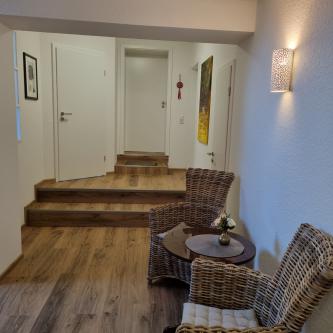 Des weiteren bieten wir drei Wohnungen im Obergeschoss an, die jeweils für 2 Personen geeignet sind. Diese Wohnungen heißen "Wiesenblick", "Nordmeer" und "Sternenhimmel".